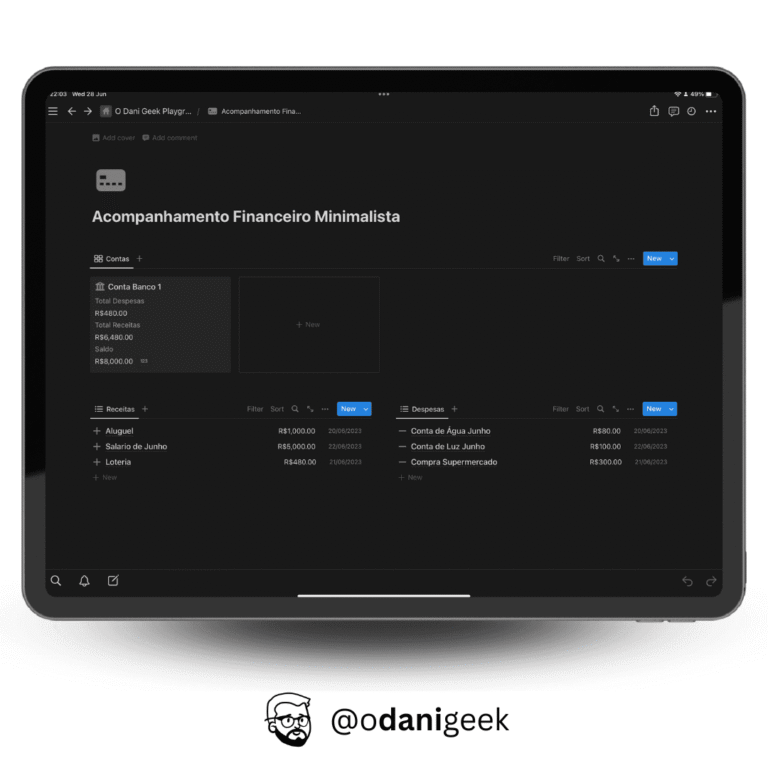 Template Notion Minimalista para você iniciar com seu controle financeiro.