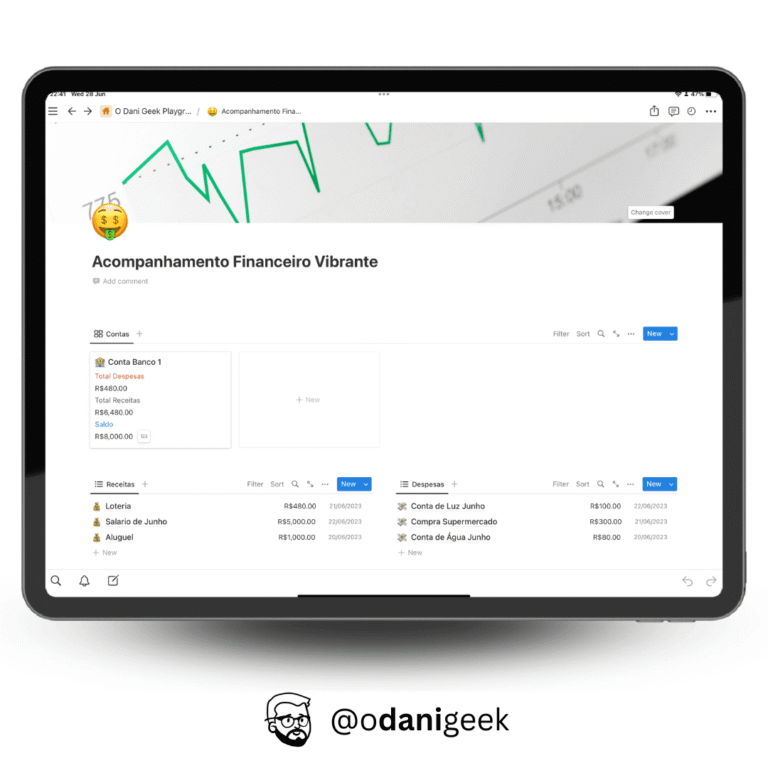 Template Notion Vibrante para você iniciar com seu controle financeiro.